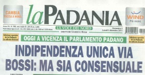 “L’indipendensa parte da Vicensa”. L’errore è voluto, per rimarcare l’importanza del Veneto che oggi ospita nella fiera di Vicenza il Parlamento Padano. E’ il vecchio germe dell’originaria divisione tra la Lega lombarda e quella veneta. Perché il partito che rispolvera la secessione e un’Europa composta da macroregioni, di fatto non si è mai effettivamente unita nella Lega Nord di Umberto Bossi. E in questi mesi di crisi interne, di lotte intestine tra cerchio magico e Roberto Maroni, anche le due originarie leghe sono tornate ad annussarsi. Stamani i circa 500 delegati ammessi a votare per il parlamento del Nord hanno raggiunto Vicenza per far riemergere dalle ceneri il vecchio organo politico del Carroccio. Da qui nel 1997 partì la secessione con fucili e rivoluzioni varie invocate da Bossi e da qui riparte oggi la volontà di indipendenza che la Lega riscopre dopo gli anni di governo Berlusconi. Insomma, lasciati i Palazzi romani si torna sul territorio. Ma i toni sono diversi, più morbidi. E’ lo stesso Bossi, chiudendo la giornata, a escludere l’uso dei fucili. “Ci vuole un po’ di fortuna e un po’ di attenzione. Attendere non ci ha fatto male”, dice.