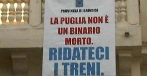 “Noi caldeggiamo queste azioni di lotta civile, che sono alla base della nostra parallela azione politica”, dice ancora Minervini. E se Trenitalia non farà il passo indietro richiesto? “Ce lo aspettiamo, per questo abbiamo scelto di cambiare interlocutore e parlare col Governo”. E se neppure Monti darà ascolto? “La vertenza è aperta, non possiamo perderla”. Boicottaggio? “Chi lo sa, vedremo poi”. Intanto in Puglia continuano a comparire gli striscioni sulle porte dei municipi e delle altre istituzioni, sull’onda dell’iniziativa della Provincia di Brindisi. C’è scritto così : “La Puglia non è un binario morto. Ridateci i treni”.