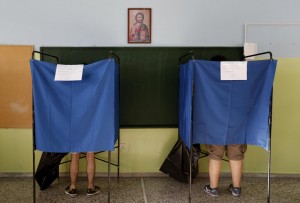 Athenians are seen inside polling booths at a school in Athens, Greece July 5, 2015. Greece voted on Sunday on whether to accept more austerity in exchange for international aid, in a high-stakes referendum likely to determine whether it leaves the euro-currency area after seven years of economic pain. REUTERS/Yannis Behrakis