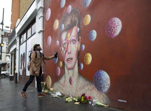 A man touches a mural of David Bowie on the wall of a Morley’s store in Brixton, London, the singers birthplace, after the rock star died following an 18-month battle with cancer. PRESS ASSOCIATION Photo. Picture date: Monday January 11, 2016. See PA story DEATH Bowie. Photo credit should read: Anthony Devlin/PA Wire LaPresse Only italyI fan rendono omaggio a David Bowie