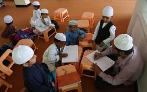 Indian Muslim children attend a class at a madrasa, or religious school, during the holy month of Ramadan in Hyderabad, India, Wednesday, July 2, 2014. Muslims throughout the world are marking the holy month of Ramadan, where observants fast from dawn till dusk. (AP Photo/Mahesh Kumar A.)