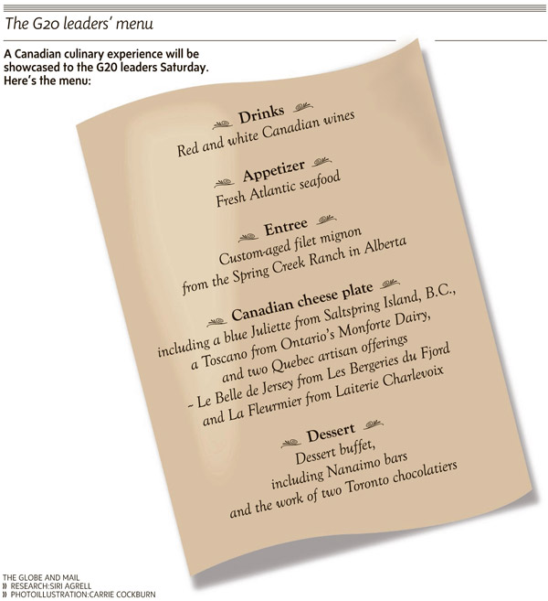 “Angela, ancora un goccio di Syrah dell’Ontario?”. “Danke, nein Dimitri, continuo con il Riesling della British Columbia”. Intanto Barack tagliuzza il suo filet mignon dello “Spring Creek Ranch” dell’Alberta, e José Luis Rodríguez addenta un formaggino bleu di Saltspring Island. Un menu a chilometro zero quello del G20 (oddio, quanto può esserlo in un paese enorme come il Canada), dove spiccano i vini canadesi. E questa è la prima, forse l’unica, grande novità. Dei vini canadesi nessuno sospettava l’esistenza. Sì, ne aveva parlato in maggio Jancis Robinson, l’esperta di vini del Financial Times. Poi il silenzio.