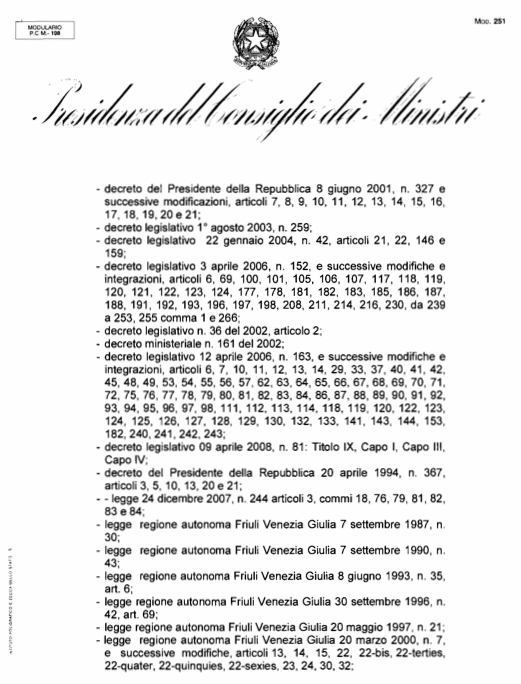 Nell’immagine, per esempio, si possono apprezzare alcune delle leggi cui si va in deroga per fronteggiare lo stato d’emergenza dovuto al maltempo in Friuli Venezia Giulia (sic). L’elenco continua per altre due pagine, e tutti dovrebbero leggersi la relativa ordinanza 3894 del 20 agosto 2010, per capire bene cosa intendo.