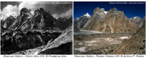 La situazione dei ghiacciai del pianeta, mostrata dai dati disponibili del World Glacier Monitoring non è affatto buona, anche in Himalaya, come discusso in un precedente post e mostrato dalle riviste scientifiche. Perciò ospitiamo volentieri il contributo dell’associazione Macromicro che racconta del prezioso lavoro di ricognizione fotografico-scientifica effettuato ripercorrendo le orme dei grandi fotografi esploratori italiani del secolo scorso. Un quadro dell’evoluzione dei ghiacciai montani del pianeta si può infatti avere confrontando foto antiche e moderne dei ghiacciai, come sarà discusso in un convegno il 15 ottobre a Roma presso la Società Geografica.