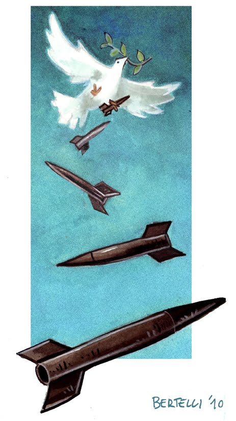L’obbiettivo è rassicurare i soldati. Nasce cosi’ un nuovo idioma militaresco: dopo la bomba intelligente, “la bomba rassicurante”. Dopotutto da sempre le bombe sono cose rassicuranti. La Russa quando era piccolo e aveva paura del buio non teneva accesa la luce. Teneva una granata sul comodino.