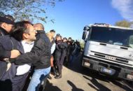 Poco prima dell’inizio degli scontri, i manifestanti avevano provato a bloccare l’autocolonna di autocompattatori diretti alla discarica, mettendosi al centro della carreggiata. Uno dei manifestanti stringeva tra le mani la bandiera italiana intonando l’inno nazionale. Con le lacrime agli occhi, molti i loro urlavano la disperazione “di una terra martoriata dall’alta incidenza di malattie oncologiche”. Alcuni erano arrivati sul posto anche a cavallo.