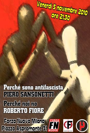 La libertà di espressione, ripetiamo, è un valore assoluto. Ma può essere il covo dei fascisti il luogo idoneo per rivendicare il proprio antifascismo? Credo che davvero pochi antifascisti e democratici possano pensare questo. Cortese Sansonetti, lei è ancora in tempo per non farsi strumentalizzare inutilmente, e per ripensarci.