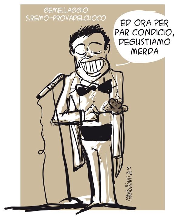 (Dopotutto Sanremo è abbastanza rappresentativo dell’Italia: l’età media è altissima, il voto comprato e i giovani fanno carriera solo grazie alla De Filippi)