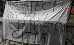 Il terremoto rimane nel cervello. Soprattutto se la gestione dell’emergenza non ti ha permesso un’elaborazione del lutto. Non si può avere altra sensazione, ritornando all’Aquila oggi: non si parla d’altro. Dei danni, della ricostruzione, di quella notte del 6 aprile. Vivere all’Aquila, diciannove mesi dopo il terremoto, è sempre più difficile. Pina Lauria a settembre del 2009 aveva occupato simbolicamente la sua casa inagibile, per protestare contro un’assegnazione che l’avrebbe mandata dalle tende a una stanza d’albergo fuori dalla sua città. Oggi vive in uno degli appartamenti del progetto C.A.S.E. di Bazzano, uno dei new village più grossi. Su alcuni balconi c’è ancora il tricolore esposto il giorno dell’inaugurazione.