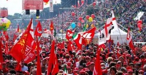 La piazza è davvero piena e anche se stavolta non ci sarà la guerra delle cifre che la stessa Cgil non vuole, basta guardare il fiume di bandiere rosse e ricordare i 2100 pulman con i 13 treni speciali arrivati a Roma per confermare che anche questa volta la protesta si fa sentire. Intanto alla domanda fatta a Susanna Camusso sullo sciopero generale, la risposta arriva spontanea: “Se è questa piazza a chiederlo, dopo questa manifestazione credo che il Governo dovrà dare le risposte che gli abbiamo chiesto e soprattutto dovrà cominciare ad avere politiche di contrasto alla crisi che sinora non ha avuto”, ha detto il neo segretario.