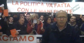 “Sono qui per guardare in faccia un mafioso che è diventato senatore”. Così dice Salvatore Borsellino, fratello del celebre magistrato ucciso dalla mafia tiene in mano il libro ‘Paolo Borsellino e l’agenda rossa’, lo stesso che sventolano con le braccia alzate i circa 200 manifestanti. “Trovo indecoroso – ha ancora detto Borsellino – che in Italia sia senatore una persona condannata per concorso esterno alla mafia”.