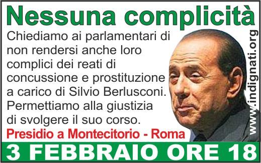 nessuna complicitàGiovedì 3 febbraio la Camera dei Deputati voterà l’autorizzazione a procedere richiesta dal Tribunale di Milano nei confronti di Berlusconi.