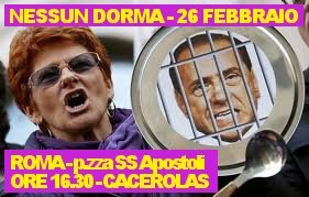 Ecco perchè abbiamo programmato martedì pomeriggio, alle 17, un presidio davanti Palazzo Chigi (Galleria Alberto Sordi) e sabato 26 febbraio “Nessun Dorma”, a Roma, appuntamento alle 16.30 in Piazza Santi Apostoli, con pentole e coperchi, rumorosi per risvegliare le coscienze degli italiani addormentati e impigriti, chiederemo anche i permessi per un corteo, perchè è giusto che ci rimpossessiamo delle nostre città. Con la possibilità, per chi vuole, di aggiungere la propria città, comune, paese per una mobilitazione molecolare ed estesa sul territorio.