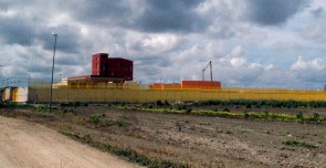 Ma il vero cortocircuito sta in questa struttura, che oggi sorge all’uscita dell’autostrada tra un circolo tennis e la base dell’agenzia spaziale italiana. Si tratta di una sorta di super carcere circondato da un doppio muro, al di là del quale si vedono i tetti di una serie di edifici e un’alta palazzina quasi fosse una torre di controllo.
