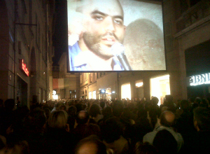“Sono un cittadino reggiano e vi ringrazio”. Roberto Saviano, spegne le polemiche sul mancato ritiro della cittadinanza onoraria concessagli dal Comune di Reggio Emilia nel 2008 e fa un autentico bagno di folla con oltre 4.000 persone (stime della Questura di Reggio Emilia) ad accoglierlo alla Libreria dell’Arco e sul’esterno in via Emilia per la presentazione del suo ultimo libro “Vieni via con me”.