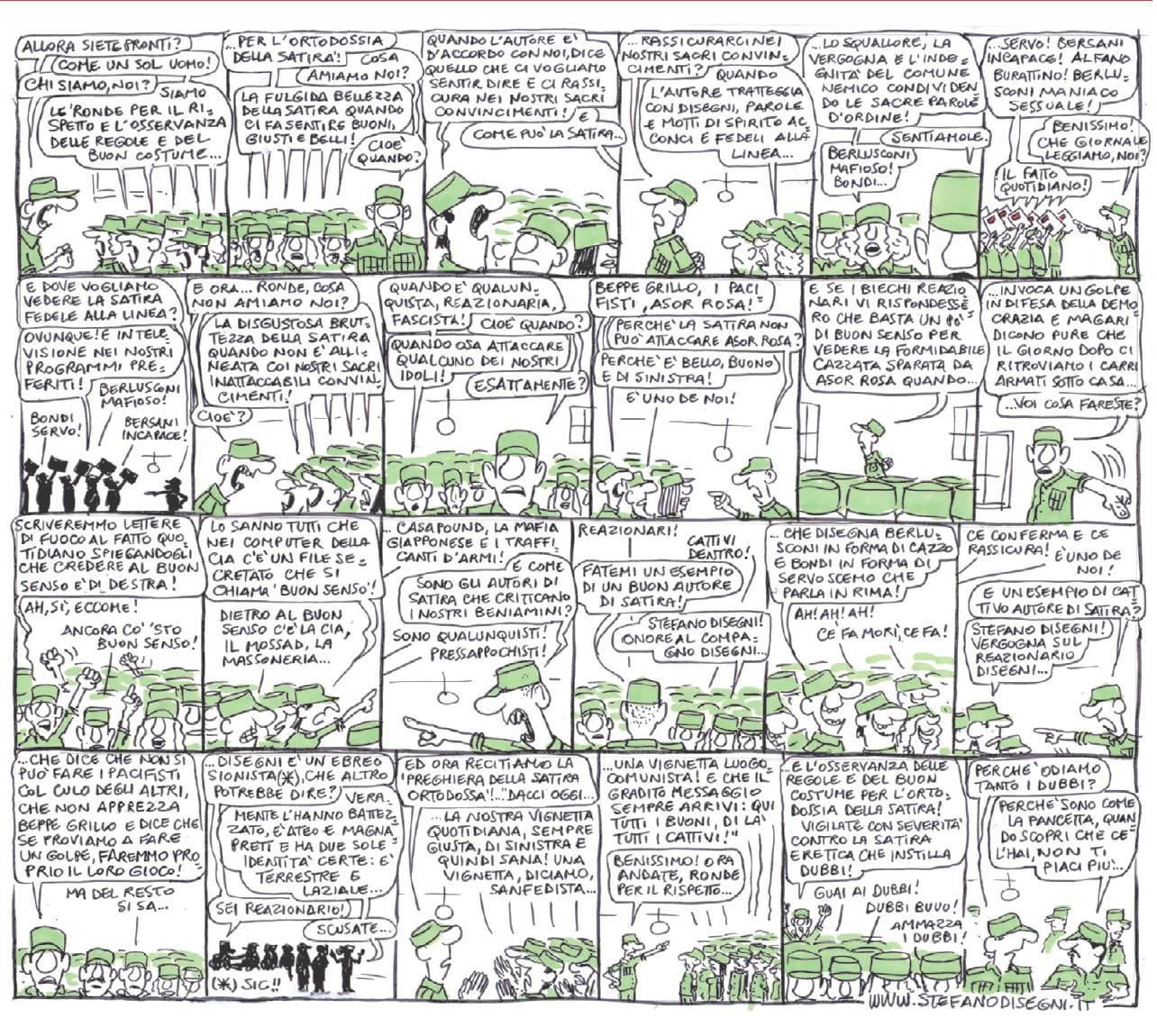 Bondi servo, Bersani incapace e Berlusconi maniaco sessuale. Ecco le parole d’ordine delle ‘ronde per il rispetto e l’osservanza delle regole e del buon costume per l’ortodossia della satira’.