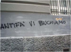 Già, i fatti. Partiamo da questi. E’ un fatto, per esempio, che nella notte tra il 28 e il 29 aprile siano state dipinte diverse svastiche sui muri della Facoltà di Lettere e Filosofia dell’Università “Federico II”, corredate dalla seguente frase: «Antifa vi buchiamo». L’altro fatto è che, la mattina del 29 aprile, cioè ieri mattina, tre studenti della Facoltà di Lettere e Filosofia sono finiti in ospedale con gravi ferite da taglio: su una mano, su un braccio e su un polpaccio (eppure nessuna dichiarazione di solidarietà nei loro confronti dalle forze politiche!). Ferite ricevute, a detta degli studenti, da membri o simpatizzanti di Casa Pound di Napoli, che hanno aggredito con coltelli alcuni studenti impegnati a cancellare dai muri dell’università le scritte naziste. Ma come fanno gli studenti ad essere sicuri che i loro aggressori erano membri o simpatizzanti di Casa Pound? Perché ne hanno riconosciuto uno di loro, Tarantino, portavoce locale di Casa Pound, già candidato del Pdl alle elezioni comunali di Napoli, e più noto ai media per aver di recente festeggiato su Facebook i natali di Adolf Hitler.