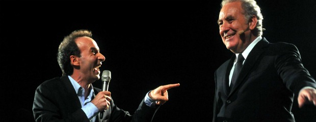 Arrivato sul palco a soprresa Roberto Benigni. Il coniglio che Michele Santoro ha estratto dal cilindro è stato il comico toscano, che lunedì leggerà Dante in piazza Maggiore. Benigni già da ieri era a Bologna e ha incontrato Michele Santoro all’ex hotel Baglioni, oggi Majestic. Pochi minuti per parlare di lavoro, anche perché Benigni non ha programmato niente. E’ salito sul palco e ha detto: “Villa Agneletti? Ma proprio a casa del segretario della Uil”. E’ l’ingresso alla Benigni, che poi salta in braccio a Santoro con un gesto naturale, forse, ma che ha molto del simbolismo: trent’anni fa, o giù di lì, fece la stessa cosa con il segretario del Pci, Enrico Berlinguer.