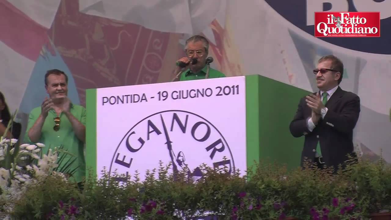 Durante il suo discorso a Pontida, Umberto Bossi viene interrotto più volte dal pubblico, che grida “Maroni presidente”. E “secessione, secessione”. Così commenta il ministro per la Semplificazione Roberto Calderoli: “C’è una parte del popolo che pensa questo e io credo che facendo le riforme si dia una risposta a quelli che chiedono la secessione. L’importante è essere padroni a casa propria e se ci si arriva con le riforme tanti di quelli che oggi chiedono la secessione si accontenteranno di un vero federalismo. Video di Franz Baraggino