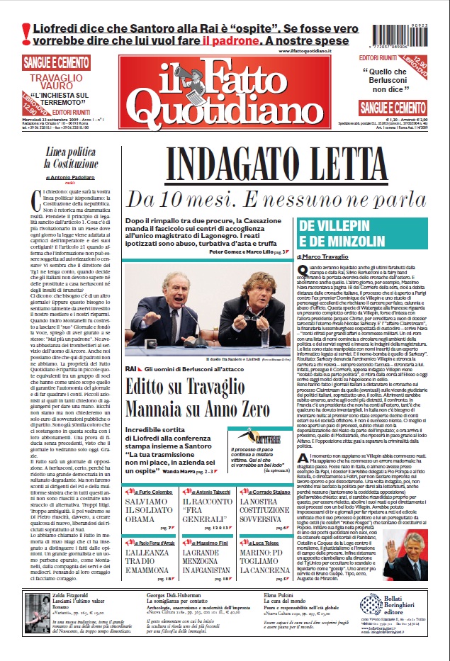A leggere l’articolo, si capisce che non ci crede neanche il povero autore dello scoop, tal Martino Cervo, che allinea parole in libertà in cui spiega che il Fatto aveva dedicato a Gianni Letta il titolo d’apertura del suo primo numero, il 23 settembre 2009 (Indagato Letta. Da dieci mesi. E nessuno ne parla). E racconta un brogliaccio delle indagini in cui si dice che a Bisignani ha telefonato, il 24 settembre 2010, il sottoscritto. Sufficiente per scrivere, nella titolazione: “Nelle carte anche Barbacetto”.