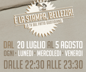 I mercati crollano, il governo barcolla, ma non molla, la Casta impazza. E la cosiddetta informazione tv chiude per ferie. Voi, però, non preoccupatevi. A dirvi dal piccolo schermo quello che gli altri non dicono (e che se anche ci fossero stati non vi avrebbero mai detto) ci pensano il Fatto Quotidiano e ilfattoquotidiano.it. Con otto puntate di talk show in diretta streaming dalle 22.30 alle 23,30, tutti i lunedì, mercoledì e venerdì, a partire dal 20 luglio fino al 5 agosto. Otto puntate di approfondimenti, analisi e dibattiti dal titolo: “E’ la stampa bellezza”, mitica battuta recitata da Humprey Bogart in “L’ultima minaccia” nel film di Richard Brooks del 1952.