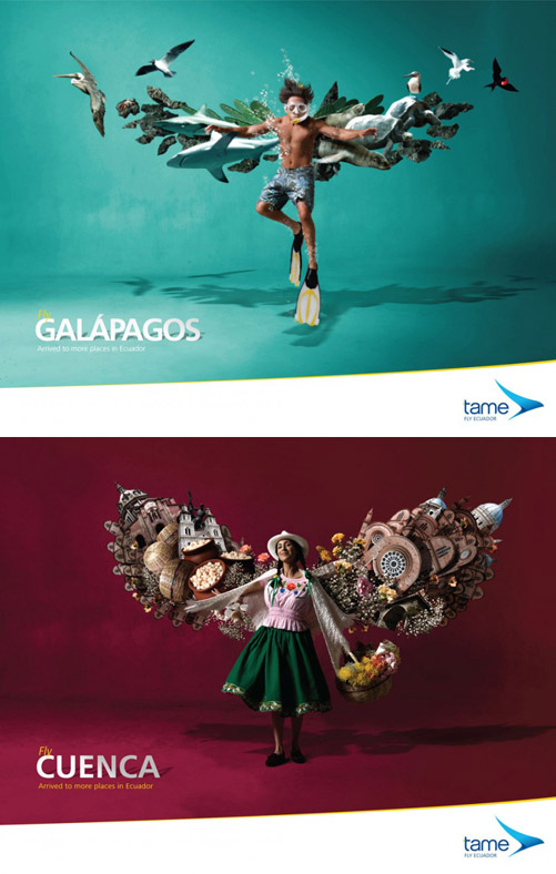 Il fatto è che oggi perfino i paesi che con la nostra solita arroganza definiremmo “del terzo mondo” riescono a produrre creatività migliore della nostra. Prendiamo ad esempio la campagna delle linee aeree dell’Ecuador. Nonostante l’Ecuador non sia certamente la mecca della pubblicità e abbia risorse culturali che non sono nemmeno lontanamente paragonabili alle nostre, i loro pubblicitari ci stupiscono con una campagna spettacolare. I protagonisti hanno ali composte dalle immagini dei luoghi che vogliono visitare. Le “ali” appartengono al mondo dei desideri ma è grazie alla compagnia aerea che questi desideri si materializzano e diventano il mezzo di trasporto con cui raggiungere i luoghi desiderati. È come un invito a esprimere qualunque desiderio, a cui la compagnia aggiunge: “Al resto ci pensiamo noi”. Ma senza bisogno di dirlo (come fa invece Alitalia): non occorre, quando la comunicazione è già così potente. Anche qui viene spontaneo immaginare che cosa avrebbero detto i dirigenti della nostra compagnia di bandiera se gli fosse stata presentata una campagna come questa. Anzi, che cosa non avrebbero detto. Il primo impatto col visual avrebbe causato sicuramente il silenzio imbarazzato di chi forse è abituato a forme di comunicazione più didascaliche e piatte. Dopo qualche minuto, il più giovane dei manager avrebbe rotto il silenzio chiedendo timidamente: “Ma… non potremmo metterci dei testimonial?”, raccogliendo sguardi di approvazione e di sollievo da parte dei superiori. Vecchia storia.