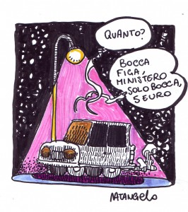 Roba di poco conto, un pò di tutto, esperimenti, robe così. Leggetene pure. E siccome io vi regalo tante e tali cose e non di solo pane vive l’uomo – se volete vedervi (e votare) una mia opera per il concorso Una vignetta per l’Europa, cliccate a quest’indirizzo: il concorso è indetto da Internazionale, la mia rivista preferita del settore non porno.