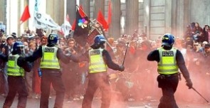 La misura, che si appella alla sola appartenenza politica, è stata emanata in vista delle Olimpiadi 2012 che, secondo le forze dell’ordine, considera gli antagonisti molto più pericolosi degli islamici. Nel mirino della polizia il gruppo di UK Uncut , lo stesso che lo scorso autunno ha organizzato le proteste degli studenti contro l’aumento delle tasse universitarie e che sabato nel sobborgo londinese di Croydon ha manifestato contro i tagli del governo. Secondo le previsioni della polizia infatti, Londra 2012 sarà il teatro d’azione perfetto per gli antagonisti che potranno aggredire Lloyds TSB, Adidas, British Airways, BT, Deloitte e ED, ovvero le multinazionali che hanno finanziato i Giochi con oltre 1.4miliardi di sterline. Oltre l’attacco alle corporation, le forze dell’ordine temono una serie di flash mob sulle principali arterie di comunicazione per impedire ai rappresentanti istituzionali di raggiungere il villaggio olimpico.