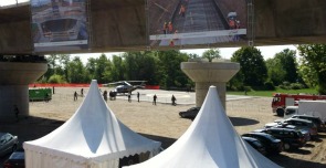 Il povero quadrato in asfalto fresco fresco di posa, con una “H” gialla e bella grossa al centro, non è stato calcato dalle nobili estremità del Presidente del consiglio, né da quelle di Matteoli. Sono arrivati solo due voli, paradossalmente da qualche decina di chilometri: uno da Milano, per portare il presidente della Regione, Roberto Formigoni, il sottosegretario Roberto Castelli e l’assessore regionale alle infrastrutture Massimo Cattaneo; l’altro dall’Emilia, per condurre sul cantiere i titolari delle due aziende costruttrici capofila: Pizzarotti (Parma) e Unieco (Reggio Emilia).
