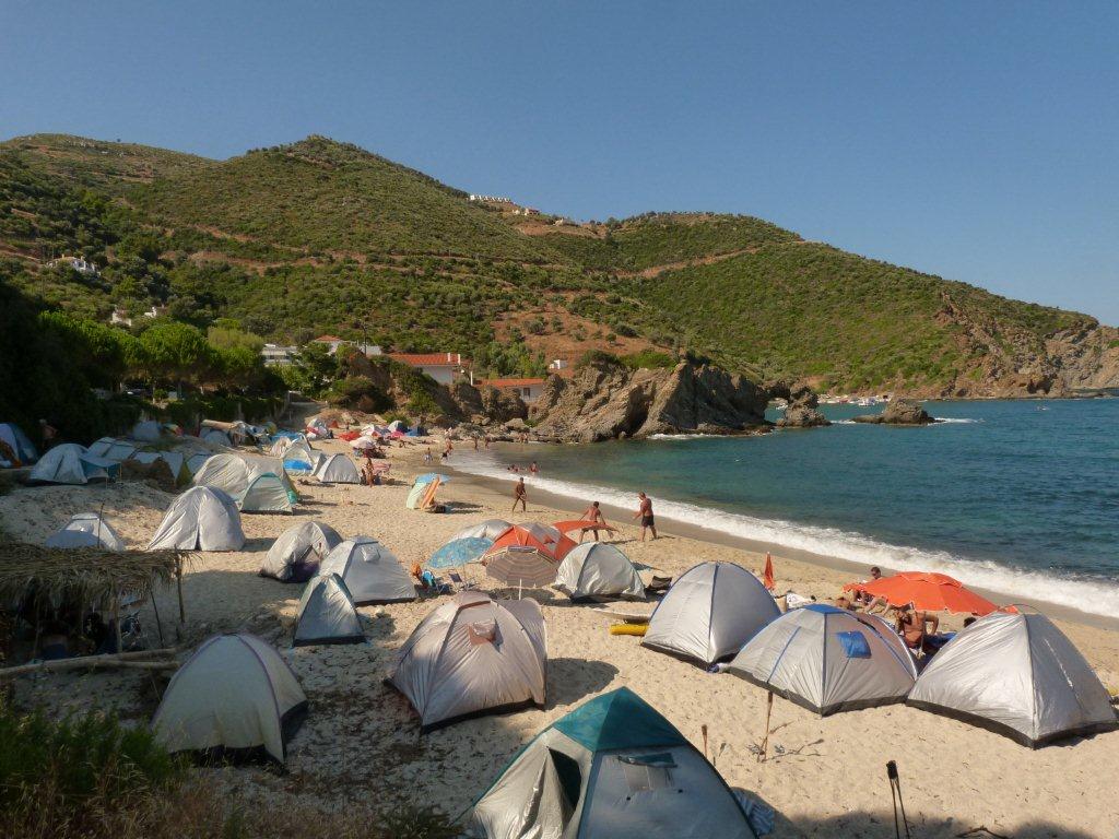 La polizia potrebbe prendere i nomi e dare le multe, ma ultimamente non lo fa più. Certo, le tende sottraggono un po’ di spazio ai bagnanti senza tenda, ma non è lo spazio a mancare, sulle coste greche. La pulizia, con i nuovi livelli di consapevolezza ecologica, è superiore a quella di spiagge di altri contesti senza campeggio. Resterebbe il problema dei bisogni corporali, ma tra il mare, i gabinetti dei compiacenti ristoranti delle spiagge, e qualche discreto uso di tratti di macchia mediterranea , quasi non ci si accorge della questione. Cerco di ricordarmi come è regolamentata la questione in Italia. Il campeggio è consentito laddove non è vietato, o è vietato laddove non è consentito? E in base a quali criteri? Il ritorno al campeggio libero – a condizione di non sporcare – non potrebbe essere una condizione sostenibile e sociale di un turismo popolare ecologico?