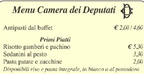 Pasta al ragù, 1 euro e 50; roast beef, 2 euro; birra, 1,60; caffè, 42 centesimi; pasticcino, 0,46; aperitivo o ammazzacaffè, 0,93. E poi ancora, spremuta, 92 centesimi; panino col prosciutto, 1,17; tramezzino, 96 centesimi; cappuccino, 58; tè con fette biscottate, 84 centesimi. In concomitanza con la seduta di stamane delle 4 commissioni parlamentari per le comunicazione di Tremonti, il popolo del web ha fatto una scoperta “culinaria”: qualcuno ha trafugato materialmente un menù del ristorante dei senatori e lo ha pubblicato tal quale. Un enorme successo mediatico. Chi ha la possibilità di frequentare la “mensa” di palazzo Madama sa bene che non si tratta di un falso. Il documento è stato sfilato da uno dei tanti menù distribuiti ai “clienti” e custodito in una cartellina rigida in pelle blu. La sua attendibilità è quindi fuori discussione. Compresi i prezzi.