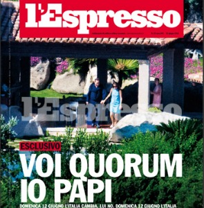 I carabinieri si sono presentati nella redazione romana dell’Espresso per eseguire un “sequestro preventivo” delle foto di Villa Certosa scattate dal reporter Antonello Zappadu. Si tratta delle immagini pubblicate nel servizio di copertina lo scorso 17 giugno, in cui si vede Silvio Berlusconi che intrattiene due ragazze in un padiglione della sua tenuta di Porto Rotondo. Le foto erano state scattate domenica 12 giugno, il giorno in cui gli italiani andarono a votare i referendum sull’acqua, sul nucleare e sul legittimo impedimento, che raggiunsero il quorum sconfessando la linea del governo. Da qui il titolo di copertina dell’Espresso: “Tu quorum, io Papi”.