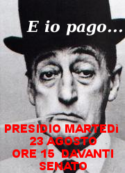 A spiegare che noi non ci stiamo, noi questa crisi non la pagheremo e vogliamo che a pagarla sia chi ne ha la possibilità, a cominciare dalla Casta dei politici, e chi l’ha causata: le banche e gli speculatori. Saremo lì a dire “E io pago…” per indicare quanto noi cittadini spendiamo ogni minuto per pagare i signori che hanno occupato il Palazzo e che, invece di pensare al bene comune, pensano solo a come mantenere le loro prebende e i loro privilegi.