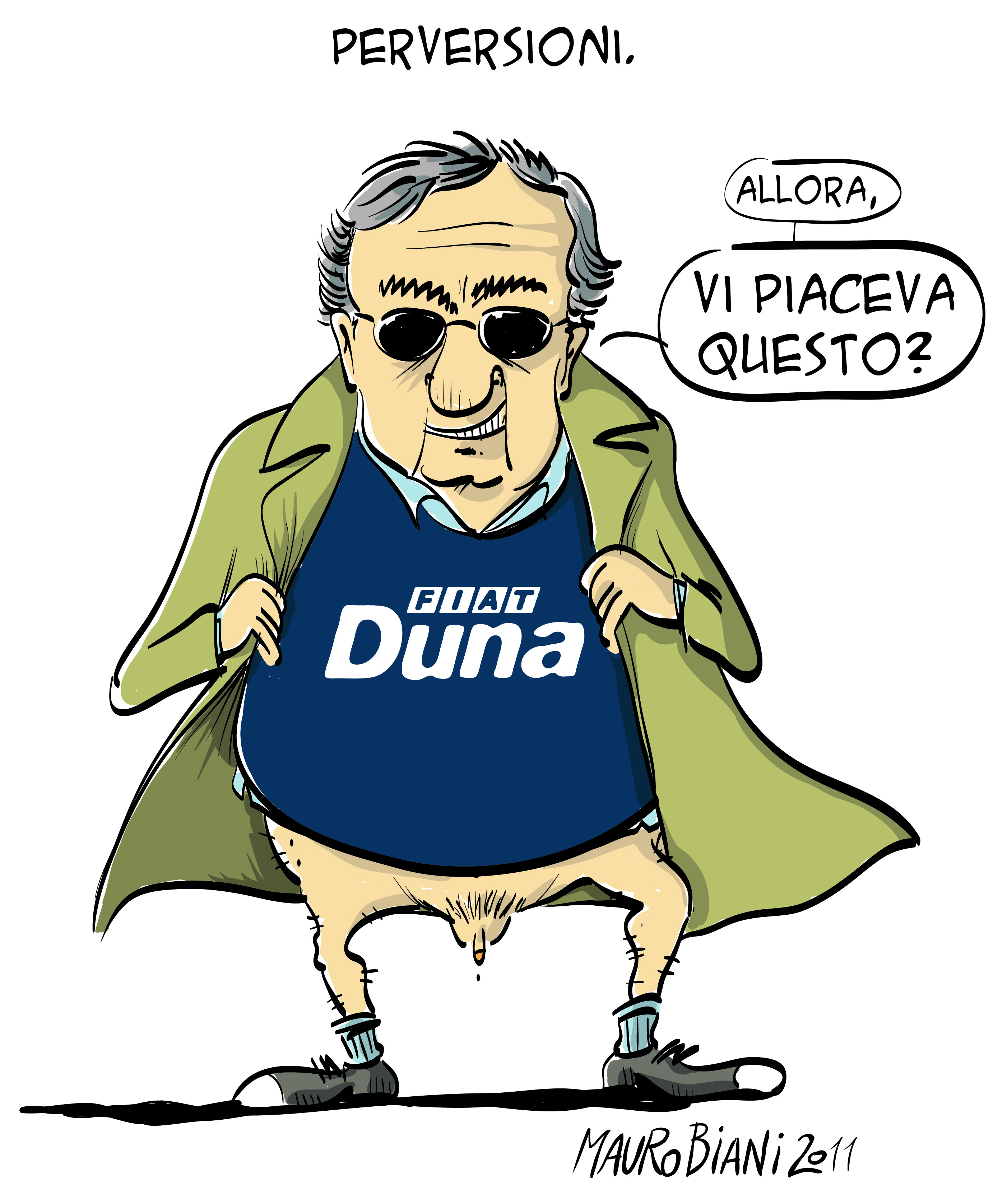 “Quel che conta è il prodotto”, ha detto, provocando un’ondata di suicidi tra gli ingegneri Fiat. La grande intuizione di Marchionne infatti è vendere auto piccole agli americani (che non le vogliono) e auto grandi agli italiani (che le vogliono, ma tedesche). Intanto, per fronteggiare gli ingenti debiti, Fiat ha lanciato una grande lotteria: chi ha visto circolare una Freemont? Nessuno, per ora. Eppure la Freemont è la nuova speranza del fatturato Fiat.