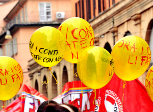 “Il governo ha fatto delle scelte sbagliate e siamo sempre e solo noi a pagare” racconta Maria della KPL Packaging, “Non siamo tutti buffoni, forse qualcosa capiamo anche noi”, aggiunge Erminia, 45 anni, metalmeccanica che, come tutti i presenti, ha rinunciato ad un’intera giornata di paga per manifestare. “Siamo in piazza oggi perché questa finanziaria ha toccato per la prima volta nella storia i nostri diritti” sottolinea Paolo, 33 anni, della Ducati.