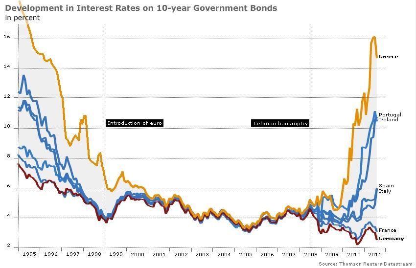 A far scoppiare la bomba è stata la crisi finanziaria del 2008-09. La crisi – o meglio le risposte alla crisi – hanno provocato un rapido peggioramento dei conti pubblici anche nei paesi rigoristi dal punto di vista fiscale, il che ha accresciuto l’attenzione dei contribuenti verso il “bang for the buck”, verso i ritorni e i costi sociali della spesa pubblica. Fino a che la spesa pubblica è inefficiente ma non provoca un insopportabile fardello fiscale, spiegare a un tedesco che occorre salvare un paese come la Grecia per consentire che l’unione monetaria continui a funzionare potrebbe non essere troppo difficile per un buon politico (Helmut Kohl riuscì a far digerire ai suoi concittadini un inverosimile cambio uno a uno tra il marco occidentale e quello orientale). Ma le cose si complicano quando il debito pubblico aumenta rapidamente (dal 65 per cento del Pil del 2007 all’84 per cento del 2011 in Germania). E così l’opinione pubblica tedesca ha cominciato a pensare seriamente all’ipotesi di sbarazzarsi dei “deficit sinner” – dei peccatori del deficit, a cominciare dai greci ma per arrivare forse agli italiani – come ci hanno fatto capire le dimissioni del banchiere centrale tedesco Jurgen Stark dal consiglio della Bce.