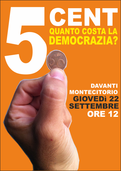Ci vediamo domani, dalle 12 in poi, davanti a Montecitorio, con i nostri 5 centesimi in mano.