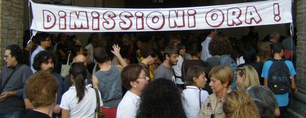 Intanto, ieri come altre dieci volte, la Parma che si indigna si è radunata sotto i portici del Grano, davanti all’ingresso del Comune, per chiedere al sindaco Pietro Vignali, prima civico poi rimasto in piedi con il solo appoggio del Pdl, legatissimo a Gianni Letta, le dimissioni. E come da tre mesi a questa parte, si è dovuto portare davanti al Comune la polizia in tenuta antisommossa, carabinieri, vigili urbani. Una volta si doveva agire contro i malavitosi, ora devono assicurarsi che i cittadini non si riprendano il Comune, un’istituzione pubblica. E come ogni volta, sotto lo sguardo rassegnato di tanti amareggiati cittadini, sono volate monetine, pomodori, urla e proteste.