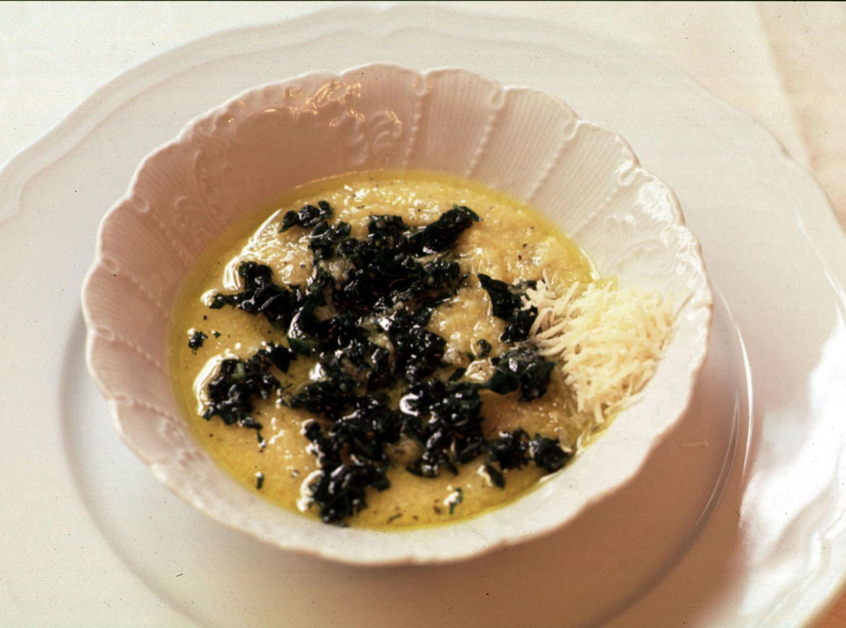 Anche se la mia riconoscenza per quelle terre e quelle genti si innalza a venerazione per le Prealpi bergamasche, e in maniera particolare per una Gemma di Clusone, meticcia per una madre che aveva sposato un veneziano friggitore di pesce, che in altri tempi mi ha insegnato la comoda e lenta cottura delle loro polente, girate vorticosamente per i primi minuti, e poi lasciate stare a fuoco lentissimo di spargifiamma, di piastra o ancor meglio in sospensione sul gancio centrale del caminetto, senza che nessuna fiamma viva lambisca la pignatta. È lì, in quel tempo di cottura, che la polenta regala, ad altre faccende, secondi e minuti. Allo scadere dell’ora, si rovescia su marmi e/o vassoi, polente di ogni genere. Le mie, a novembre, sono con l’olio nuovo. O col cavolo nero, pepe, olio e parmigiano. D’inverno con sugo di carne e in autunno con porcini trifolati. Ma a fine estate la mia polenta bella densa regge un pomodoroso sugo di piccantissimi pesci vari: ricciola o palamita, ad esempio, con un soffritto di cipolla e/o aglio, con un trito di prezzemolo e basilico o origano e seme di finocchio polverizzato. Senza evitare il semplice misto di cozze e vongole sgusciate, o di telline sgusciate risaltate in un burro fuso, prezzemolo aglio e pepe nero. Da servire, quest’ultima idea, in una piccola porzione di po-lenta, lenta e non dura.