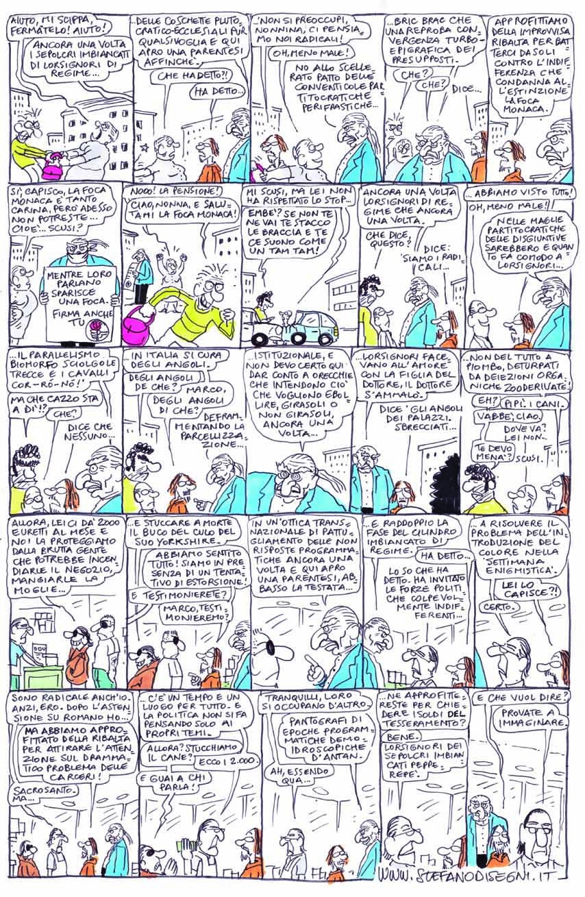 Il rapinatore vi sta scippando? L’eloquio di Pannella vi verrà in soccorso. Un automobilista vi ha tamponato e vi vuole pure menare? Ci pensa ancora Pannella con quella vecchia storia dei sepolcri imbiancati della politica. La camorra vi chiede il pizzo? Parlatene con Pannella. Ma non chiedete a Pannella di votare per l’arresto del ministro Romano, quello proprio no.
