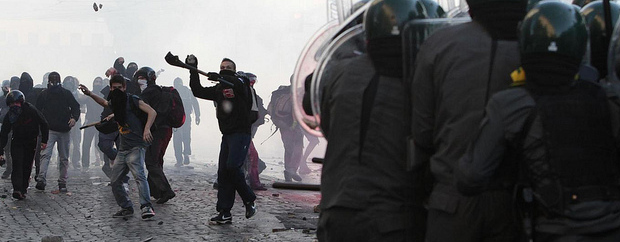 Sempre da Bologna giunge nel pomeriggio una dichiarazione di Cathy Latorre, consigliere comunale di Sel, che proprio in apertura di consiglio comunale ha riportato in modo critico la sua testimonianza dalla piazza romana di sabato scorso: “le forze di polizia, che dovrebbero garantire la libera espressione del dissenso, hanno attaccato una piazza, caricato e lanciato fumogeni ad altezza d’uomo, caricando anche pezzi del corteo pacifici e ignari. Non hanno isolato, prima, durante e mentre, i gruppi dal volto coperto che a Roma hanno agito indisturbati. Com’è stato possibile che persone visibilmente orientate ad esercitare violenza abbiano attraversato tutto il corteo ostacolati soltanto dalle grida di dissenso dei manifestanti pacifici?”