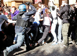 Intanto, però, proprio in merito alla vicenda della giovane ragazza, citata da Del Bello, che riportò una ferita alla testa il 6 aprile del 2009, inizierà il processò per il carabiniere del battaglione autore di quel gesto, sempre per lesioni volontarie e con l’aggravante dell’uso di arma. La giovane, all’epoca ventiduenne, che protestava davanti al rettorato ricevette una manganellata in testa, riportando un trauma cranico e una prognosi di quaranta giorni. Le indagini condotte dal pm Plazzi tramite la polizia giudiziaria, hanno individuato il carabiniere, che è stato citato a giudizio nell’ottobre del 2012. In quella situazione non ci fu, infatti, alcun disposizione per caricare da parte del responsabile del servizio, e in un momento di spinte e confusione, partì il colpo verso la giovane, che era di schiena, con un tonfa.