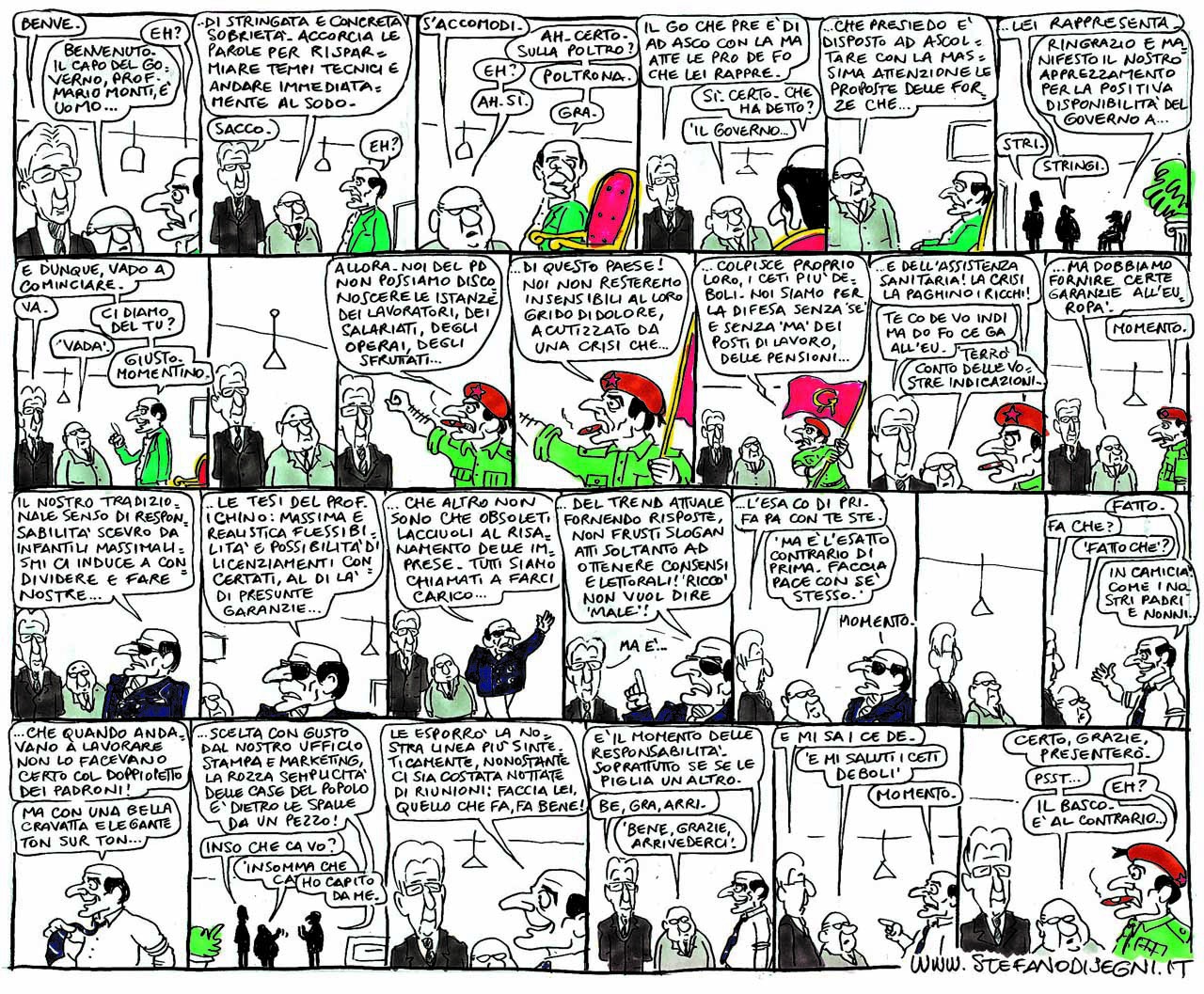 Finita l’era Berlusconi, l’ex opposizione del Pd è costretta a fare i conti con una ingombrante verità: ora le tocca governare. Di certo, il nuovo presidente del Consiglio mostra di non avere tempo da perdere. Mentre Pierluigi Bersani mostra ancora qualche difficoltà con la sintesi…