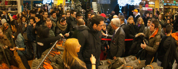 Per i piumini della Coin a Firenze c’erano più di 400 persone, in fila dalle 7 di mattina, anche se la promozione partiva alle 11. Già alle 10 la folla, occupando la strada, impediva il passaggio di ambulanze, taxi e altri mezzi. Il direttore del grande magazzino, per evitare che si creassero incidenti, è stato costretto a chiedere il soccorso delle forze dell’ordine.