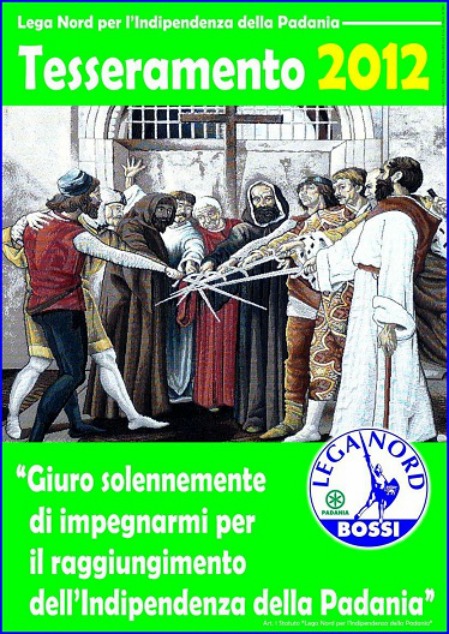 I lavori sono cominciati alle 10.30, aperti da Federico Bricolo che ha proposto di votare per alzata di mano la nomina di Roberto Calderoli come presidente del Parlamento Padano. L’ex ministro ha preso la parola: “Grazie, intanto voglio ricordare che la Lega è Bossi. Poi voglio invitarvi a non dar retta a quegli stronzi di giornalisti che ragliano e vogliono dividere la Lega”. Calderoli ha poi riproposto il giuramento padano per i nuovi tesserati che devono impegnarsi a raggiungere la secessione perché “noi siamo qui per portare a casa l’indipendenza della padania, non per portare alla lega i voti” (guarda il volantino). ”C’è la necessità che le nostre regioni del nord inizino il coordinamento tra loro. Lo prevede l’articolo 117 della Costituzione”, ha spiegato Calderoli. “Oggi abbiamo il Veneto ed il Piemonte – ha proseguito – domani incontreremo Formigoni per vedere se ci sta, poi toccherà al Friuli, al Trentino, etc. per formare quella macroregione che è la Padania”. “La prossima proposta di modifica della Costituzione – avvisa – andrà a toccare sia (la parte che afferma che l’Italia è, ndr) una che indivisibile”, aggiunge. “Prendiamo atto – conclude – che il governo cancella il ministero delle Riforme, caro Monti, ma significa mettere una pietra sul federalismo”. Poi è stato il turno dell’ex titolare del Viminale.