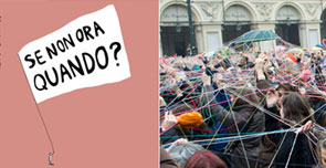 ”A Roma eravamo circa ventimila, in tutta Italia stimiamo siano scese in piazza circa centomila persone”: da Torino, a Genova, da Venezia, ad Ancona, a Sassari e a Messina, molte le manifestazioni per i diritti delle donne nel paese. Vogliono affermarsi nella nuova stagione politica, perché solo se ritroveranno “centralità e dignità sociale l’Italia uscirà dalla crisi”. “Se non le donne chi?“: con questo nuovo slogan il comitato ‘Se non ora quando?’ è sceso in piazza del Popolo a Roma, principale tra le manifestazioni, per rivendicare i diritti del mondo femminile: lavoro, welfare, rappresentanza e comunicazione i temi sollevati dal movimento. Ad aprire la mobilitazione una sequenza di video messaggi che, nelle parole di attrici, cantanti, e altre protagoniste della scena pubblica, ricordano come “la crescita economica del paese e la democrazie non saranno realizzabili senza le donne”. Dal palco un appello al Paese di rilancio e rinascita economica, politica e culturale nell’esperienza dei racconti delle donne comuni. Nonostante la pioggia, molte persone a piazza del Popolo, uomini e donne. Indossano magliette con il logo del comitato, alzando cartelli che rivendicano sostegno per la maternità, per l’accesso al lavoro, per una nuova immagine delle donne. Un manichino senza busto reca la scritta “una vita spezzata” mentre tre donne in costume dell’associazione ‘Rete per la parità portano al collo la frase “mai piu” portatrici di voti”.