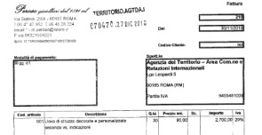 Non basta. Sempre da Peroso un ignoto funzionario dell’Agenzia compra il 20 aprile del 2010 una “sciarpa in seta con perle”, evidentemente false, visto il prezzo, e “due scatole in radica con targhette personalizzate con vostri loghi” prezzo totale 876 euro. E poi ancora altri “1226 euro per i vassoi personalizzati con il logo”. Davvero è così importante questo logo dell’Agenzia da giustificare queste spese?