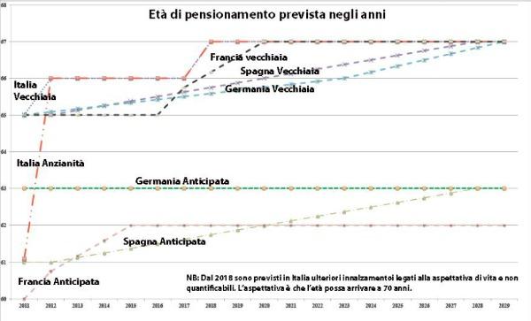 3- Guardando le linee che descrivono il come le riforme verranno attuate nei vari paesi, si nota che quelle di Spagna, Francia e Germania hanno delle pendenze diciamo ragionevoli, mentre quelle italiane sembrano l’altimetria della tappa del Mortirolo al Giro d’Italia e vanno a salti, in modo da garantire che due nati a tre quattro giorni di distanza possano guardarsi in cagnesco e i disoccupati in attesa di pensione pensino seriamente al suicidio. Che Tedeschi, Francesi e Spagnoli siano dei deficienti?