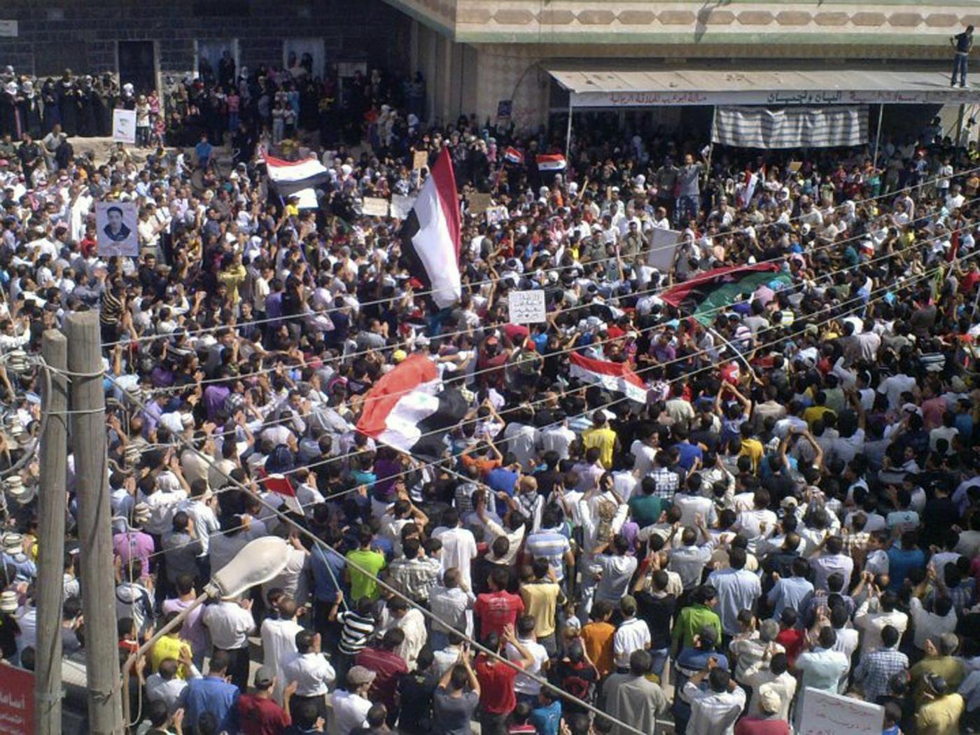 Nella foto le proteste contro il presidente siriano Bashar Assad, il 30 settembre 2011 (Lapresse – clicca qui per ingrandire)