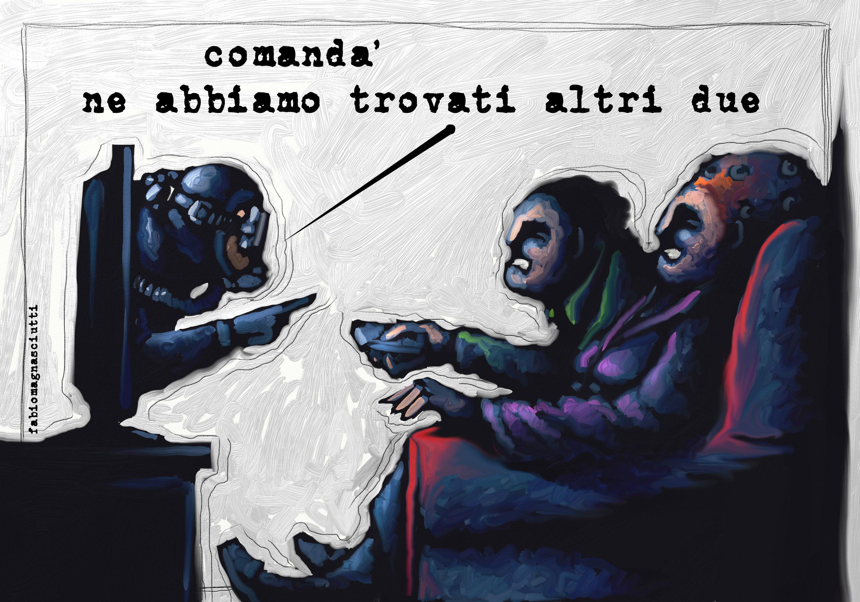 Il comandante vigliacco diventa il Comandante Vigliacco e si ride, si ride della sua arrogante stupidità, della sua paura, delle sue scuse ridicole con la guittesca esagerazione della stupidità, della paura, del ridicolo che già sembrava, nella cronaca, aver trovato il suo massimo. Non si sono ancora trovati tutti i dispersi, che sono probabilmente morti, e tutto quello che riguarda il naufragio è non solo diventato parola ma parola buffa, gioco esilarante, calembour scintillante, cortocircuito stimolante. Equilibrato dalle paginate di ritratti delle vittime, confezionate con il fiocco funerario del giocattolo perduto, del sogno infranto, dell’amore lacerato, della giovinezza pulita finita tra le alghe, a farsi spolpare dai pesci.